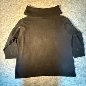 This vintage Victoria Jones Christmas sweater in size 2X features a tight-knit design with embroidered festive trees and stars, adding a touch of whimsy to your holiday attire. The black sweater has a cowl neck and long sleeves, making it perfect for various occasions such as travel, parties, or casual gatherings. Made from a blend of ramie and cotton, the sweater is accented with beaded, rhinestone, and sequin details, adding a bit of sparkle to your festive look. This relaxed fit sweater is a charming addition to your winter wardrobe, showcasing the brand's signature style with a Christmas theme.