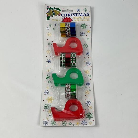 Vtg Christmas Tape Set 3 Mini Dispensers Foil & Patterned Rolls 1990s Taiwan