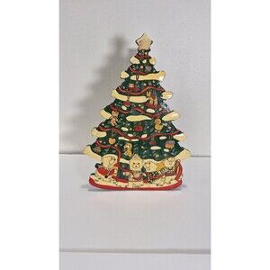 Vtg Christmas Tre Transfer Intl. Hand Painted Wood Paper Towel Holder Holiday