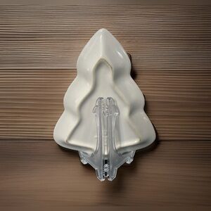 It's a stoneware plate shaped like a Christmas tree, featuring the signature Winterberry design of green holly sprigs with red &white berries.