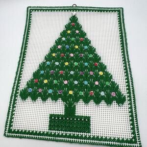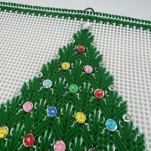 Vtg Christmas Tree Yarn Art Plastic Canvas Sequins Wall Decor Needlepoint 13"