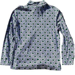 Vtg Christmas Tree white green blue Turtleneck t-shirt Aileen Petites