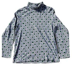 Vtg Christmas Tree white green blue Turtleneck t-shirt Aileen Petites Size Large