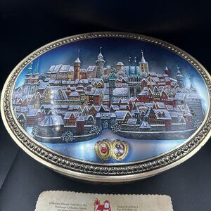 VTG Lebkuchen-Schmidt Kaiserburg Christmas Village Large Oval Cookie Tin Box