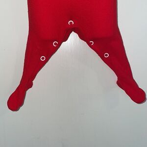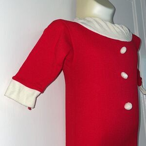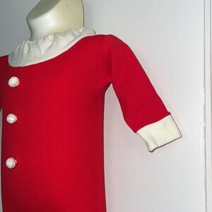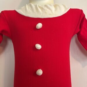 Vintage 60s/70s infant or baby Christmas red & white knit Santa Claus footie onesie with white pompoms on front