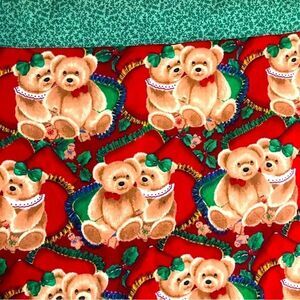 Vintage Christmas Teddy Bears throw blanket. Teddy Bears design on the front, and green on green leaves design on the back. Pre-owned in good condition. Please refer to pictures for best description and condition verification.