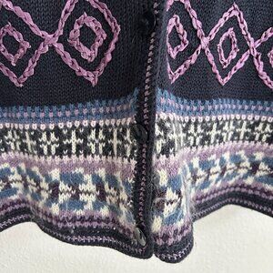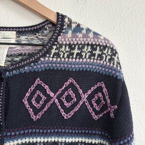 Vintage Christopher Banks womens size large hand embroidered button down cardigan sweater. Blue with purple embroidery.