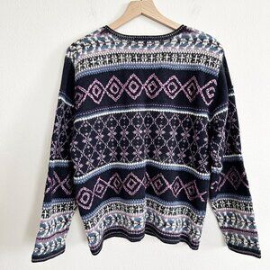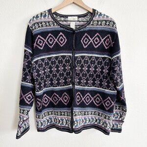 Vtg Christopher Banks Sweater Womens L Blue Fair Isle Hand Embroidered Cardigan