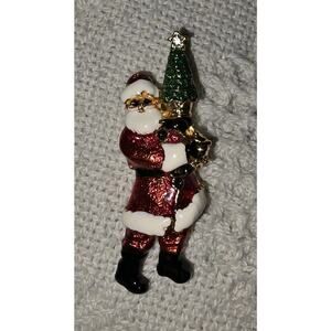 Vtg Christopher Radko Santa Pin Shiny Brite Goldtone Enamel Christmas Holiday