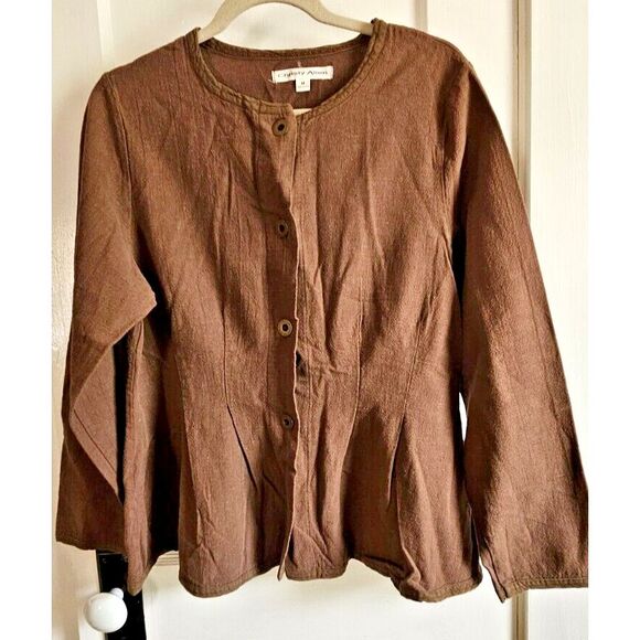 Vtg Christy Allen Sz M cotton flax button front jacket brown USA made