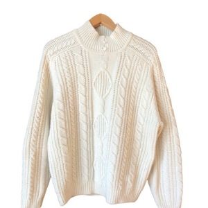 Vintage ivory cable knit mock neck fisherman sweater by Joan Harper