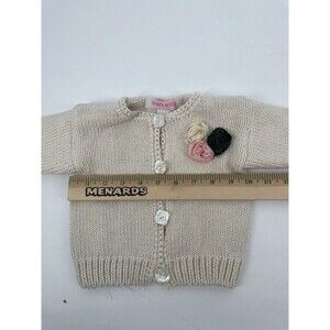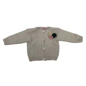 Vtg. Chunky Knit Rosette Granny Cottage Minimalist Button Cardigan Cotton 18 Mo