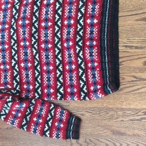 Vtg Chunky Handknit 100% Wool Oversized Turtleneck Sweater - Red & Black Pattern