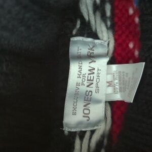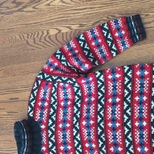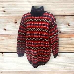 Vtg. Chunky handknit wool red/black pattern oversized turtleneck sweater sz L
