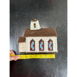 Vtg Church Steeple- crochet frame- some wear- music box how great thou art