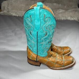 Vtg Circle G Boots Womens Sz 8.5M Western Square Toe Turquoise & Brown Cowgirl