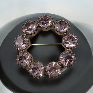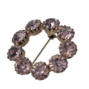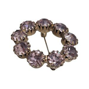 Vtg Circular Rhinestone Brooch Gold-Tone Light Purple Rhinestones Prong Set