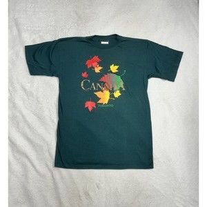 Vtg Cityscape Toronto Canada Green Single Stitch Fall Graphic T-Shirt Size Large. Please see pictures for condition and measurements for proper sizing and fit.