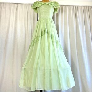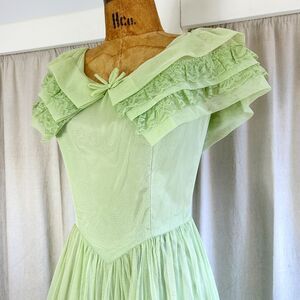 Vintage 50s does Civil War Southern Belle Celery Green Ruffled Lace Hoop Skirt Formal Gown
