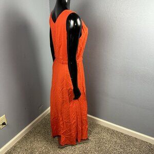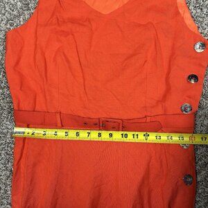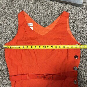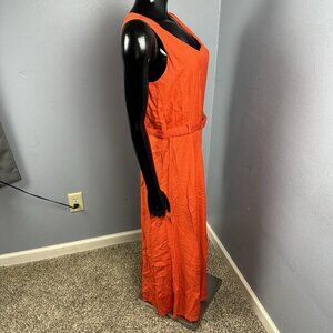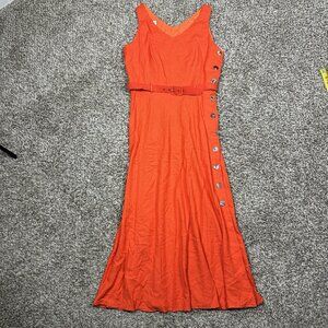 Vtg Claude Rene Orange Linen Side Button Sleeveless Dress Maxi Belt Sz 14 New