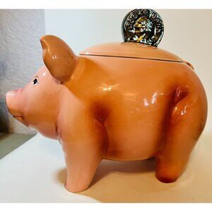 Vtg Rare Ceramic Piggy Cookie Jar With Chrome Coin Lid Grannycor farmcor. This big boy can be anything you want him to be: cookie jar, planter, piggy bank, You'll laugh everytime you look at him, he is so adorable!