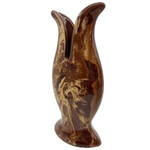 This vintage 1987 Clays in Calico pottery vase features a high gloss marbled brown and cream design, showcasing a beautiful blend of earthy tones. Signed by the artist "Cardwell Montana" and dated 1987, it stands at 11 inches tall. The unique marbling technique gives it a distinctive, handcrafted appeal, making it a charming addition to any collection or home decor.