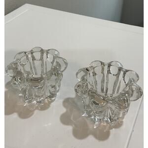 Vtg Clear Heavy Crystal Candleholder Candlestick Holder Taper Flower Shape NOS