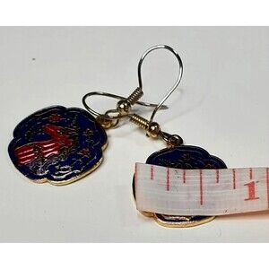 These charming vintage cloisonné earrings feature whimsical unicorn motifs in vibrant red and blue enamel on lightweight gold-tone metal. Perfect for boho, fantasy, fairycore, or cottagecore aesthetics, they add a playful and magical touch to festival outfits, quirky casual looks, and collector displays. The dangle style creates movement that catches light and attention, ideal for those who love unique statement jewelry with a nostalgic, artistic vibe.