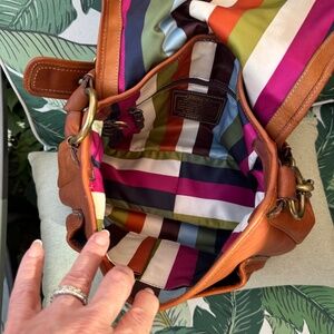 The interior of the vintage Coach Ali Legacy 10329 bag features several distinct characteristics: