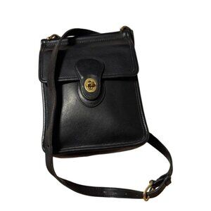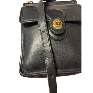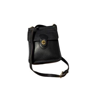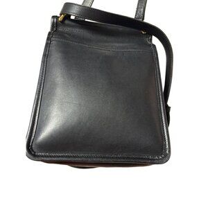 The Vtg Coach Black Leather Murphy Crossbody Bag 9930 is a vintage collectible handbag that exudes sophistication and style. Made with high-quality leather, this small bag features a turn lock closure, gold hardware accents, and a crossbody style with an adjustable black leather strap. The solid black exterior color, coupled with the vintage appeal of the Coach brand, makes this bag a timeless and versatile accessory for any woman's wardrobe. Perfect for carrying essentials while on the go, this bag is a must-have for those who appreciate classic design and quality craftsmanship.