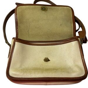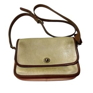 This stylish shoulder bag features a sophisticated cream and brown design, perfect for any occasion. Its elegant look is complemented by a durable strap, making it both fashionable and functional. Authentic Vtg Coach Spectator Bag. Has some soiling from use. Overall good condition and rare. See pics for condition.