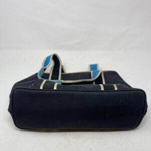 This is a versatile and durable tote bag from Coach, perfect for an everyday bag, school, market trips, or beach outings. The canvas construction is practical, and the Navy Blue body with contrasting stripe details and light blue leather accents gives it a stylish, nautical-inspired look.