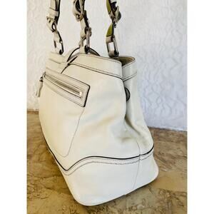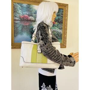 Vtg Coach Hampton convertible leather/Canvas white/lime shoulder bag Bag F11345