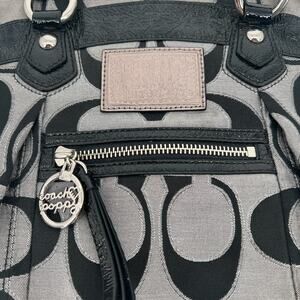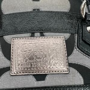 Vtg Coach Poppy Handbag Black Gray Y2K Signature Logo Key Chain Charms
