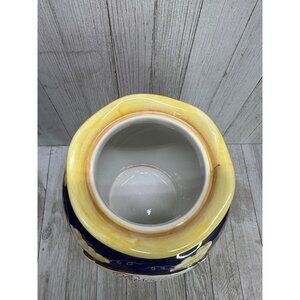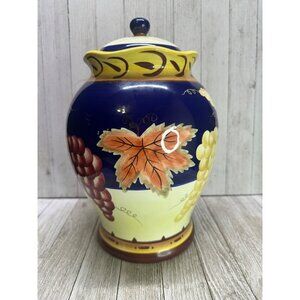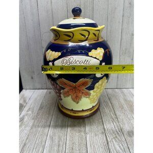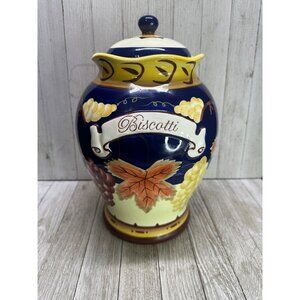 Vtg Cobalt Blue 11" Tall Cookie Jar BISCOTTI Canister Fall Leaves French Country