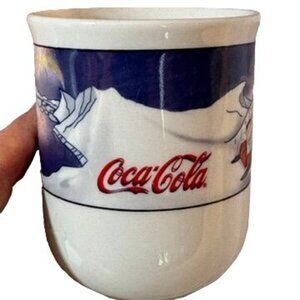 Vtg Coca-Cola by Sakura Polar Bear Winter Scene Mugs Porcelain Cups 3 Piece Set