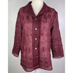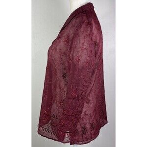Vintage Coldwater Creek Burgundy Embroidered Sheer Whimsygoth Blouse Size 8 Vampire