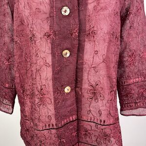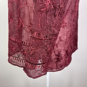 Vtg Coldwater Creek Sheer Burgundy Embroidered Top Burnout Dark Romantic Boho