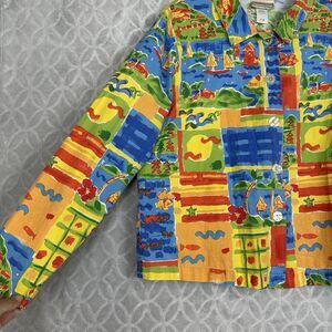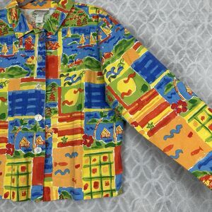 Vtg Coldwater Creek Top Womens L Colorful Tropical Boxy Button Shirt Art to Wear