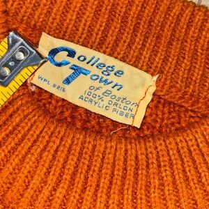 Vtg College Town Of Boston Knit Orlon Acrylic Sweater No Size Tag Burnt Orange