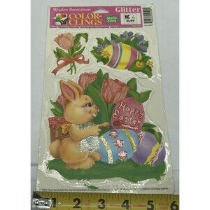 Vintage Color Clings Happy Easter Window Decorations Bunny Rabbit Eggs Flower. Ships quickly. Measurements photographed