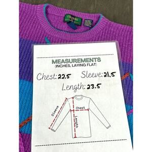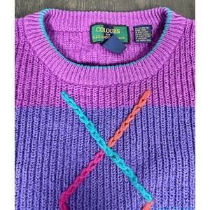 Vtg Colours By Alexander Julian HAND INTARSIA Knit Sweater Women's M Wool Blend. Sweater is in good pre owned condition, there is a mark or stain on the sleeve. Please see all pictures and measurements.