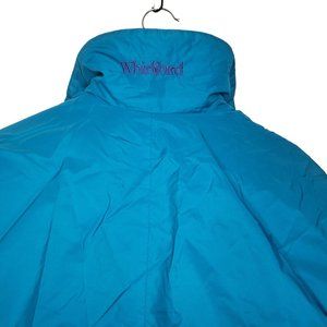 Columbia WHIRLIBIRD Interchange Winter Jacket. Outer coat is turquoise. Inner zip-in puffer coat is reversible black or purple.