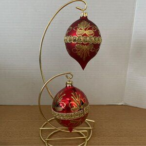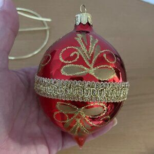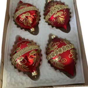 Vtg Commodore Christmas Classics Glass Ornaments Red Gold Matte Shiny Romania