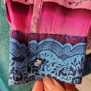 Vtg Corey B Silk shirt oversized medium tunic pink and green. EUC. Covered buttons. Super soft and flowy. Wear open or closed.