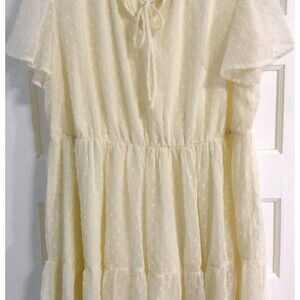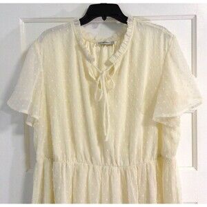 Vtg Cottage Dress Wn 20 Butter Yellow Midi Sheer Tiered Babydoll Fairy Peasant