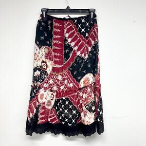 Vtg Cottage SANDRO Gypsy Boho Colorful Patchwork A-Line Maxi Skirt Size Medium