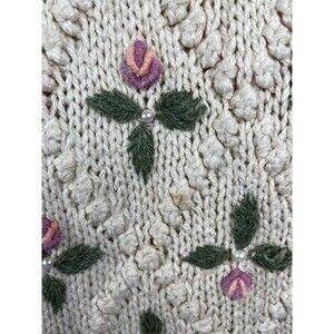 Vtg Cottagecore Floral Knit Pearls Sweater 90s Needles & Yarn Sz L