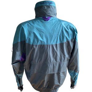 Vtg Couloir Mens Hooded Windbreaker Jacket Sz 40 Green Entrant Nylon Colorblock