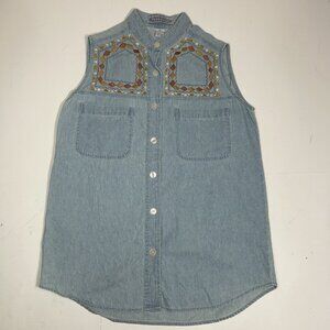 Vtg Country Legends Sleeveless Women Denim Shirt Beaded Embroidered Western Sz S
